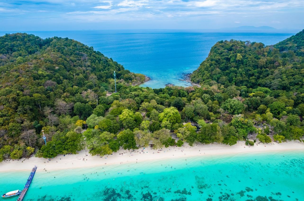 Знаменитая панорама с высоты: два залива, изумрудное море и остров в форме подковы — одна из самых фотографируемых точек Таиланда.