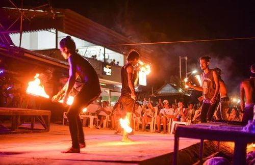 Зрелищное фаер-шоу на пляже — энергия, ритм и огонь под звёздным небом.